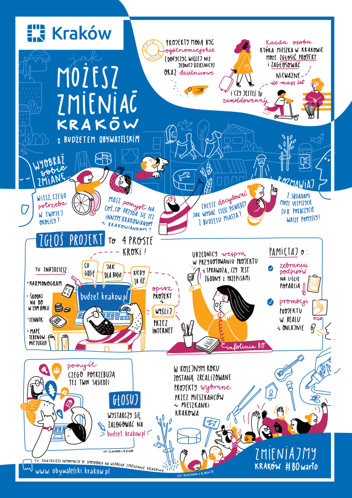 Jak zmienić Kraków przy wykorzystaniu budżetu obywatelskiego w kilku prostych krokach? W jaki sposób wyrazić swoją opinię poprzez konsultacje społeczne? Czy jak brzmi przepis na inicjatywę lokalną i działania sąsiedzkie?